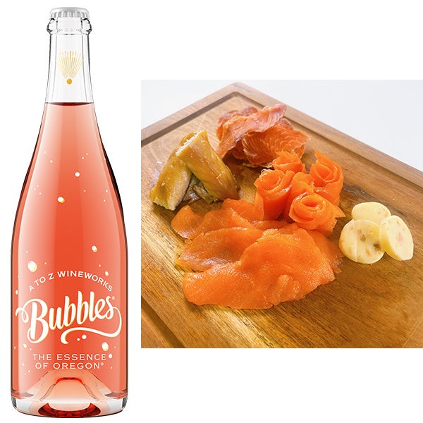 ロゼの柔らかな果実味、キレのよい泡でサーモンの旨みを包みます。