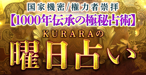 王家や権力者も極秘で崇拝。ミャンマー国内にて古来より伝わる“危険すぎるほど当たる”八曜日占い。あなた自身に宿る本来の本質やあの人との宿縁を暴き、今後待ち受ける運命の全てを明らかにします。研究に研究を重ねて得た見識と実力に企業の社長や経営者がその身を託す【八曜伝承者】KURARAの嘘や隠し事も一切通用しない国家機密レベルの占いをご体感ください。