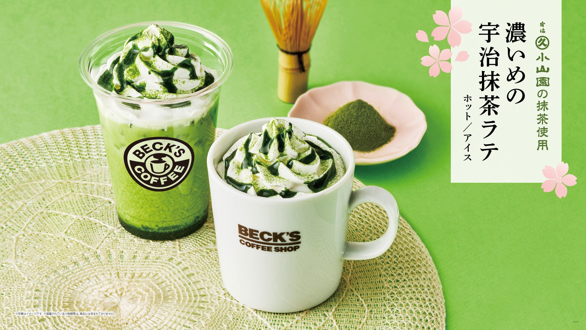 ひと口飲めばふわりと広がる宇治抹茶の香りに、奥深い旨みがまろやかなミルクと溶け合う至福の一杯に仕立てました。一足早い春の訪れをベックスコーヒーショップからお届けいたします。