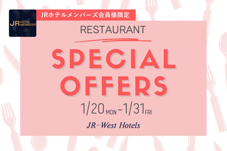 株式会社ジェイアール西日本ホテル開発(京都府京都市下京区、代表取締役社長 伊勢 正文)が展開するJR西日本ホテルズの10ホテルでは、JRホテルメンバーズ会員様を対象に、レストランをお得にご利用いただけるスペシャルオファーを開催いたします。