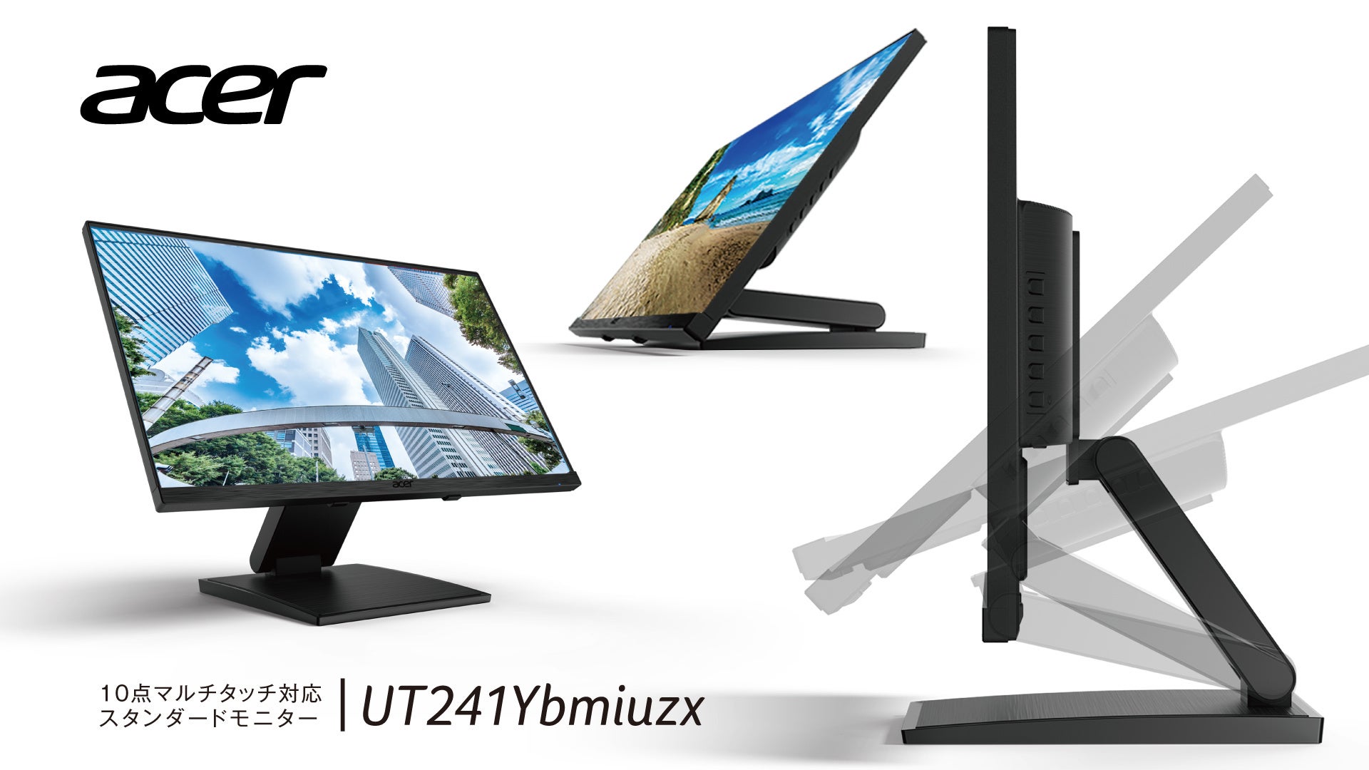 日本エイサー株式会社(本社:東京都新宿区、代表取締役社長:ボブ・セン)は、法人市場に向けて、タッチ操作対応の23.8インチ フルHDスタンダードモニター「UT241Ybmiuzx」を3月中旬より発売します。ディスプレイのチルト角は上88°、下3°まで対応し、使用シーンに合わせて画面角度を幅広く調整できる新モデルは、映り込みを抑える非光沢のIPSパネルを採用。さらに、両手を使っての直感的な操作が可能な10点マルチタッチに対応(※)しており、会議室での資料やデザインを編集しながら行うミーティングでの使用や、店舗でのお客様への案内表示ディスプレイとしての使用など、さまざまなビジネスシーンで活用いただけます。
