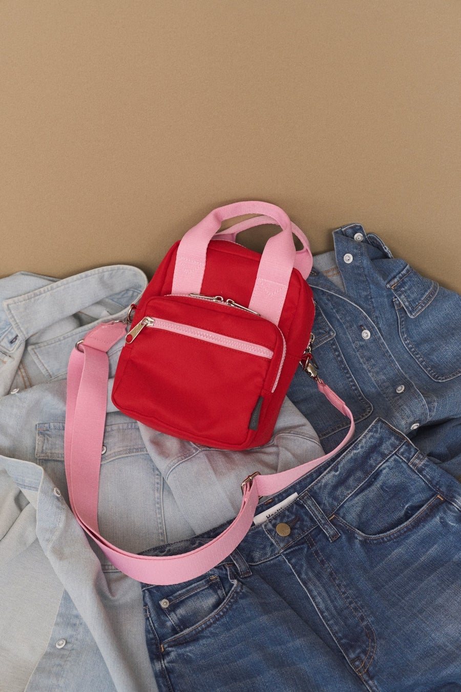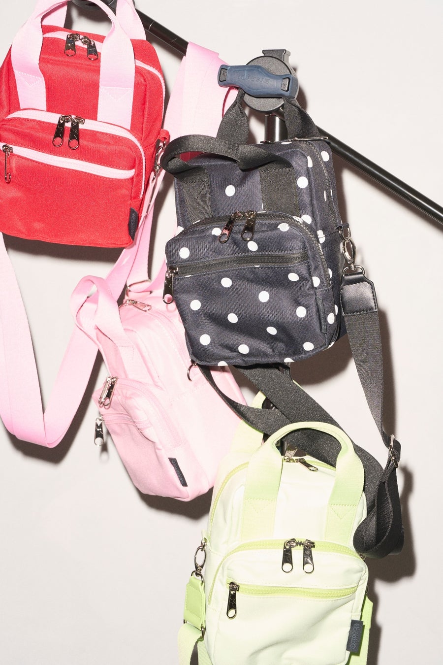 「Happy Trail Line」は、鮮やかなカラーが映えるスクエアフォルムのショルダーバッグと、春コーデの差し色になる軽やかなバイカラーリュックの2型。