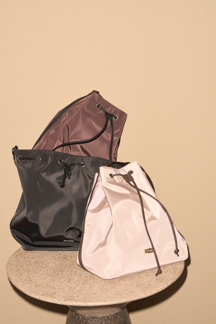 「Refind Line」は、ふんわりリボンで魅せる毎日にちょうどいい大容量トートと、上品さと機能性をひとつにした巾着デザインのショルダーバッグの2型。