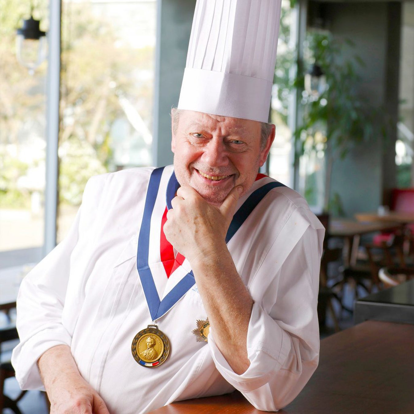 「マキシム」(当時三ツ星)、「ホテルリッツ」を経て、1987年に銀座「マキシム・ド・パリ」の総料理長として来日し、その後、代官山のフランス料理学校「ル・コルドンブルー代官山」の校長に就任するなど、フランス料理界の発展に貢献した三ツ星シェフです。