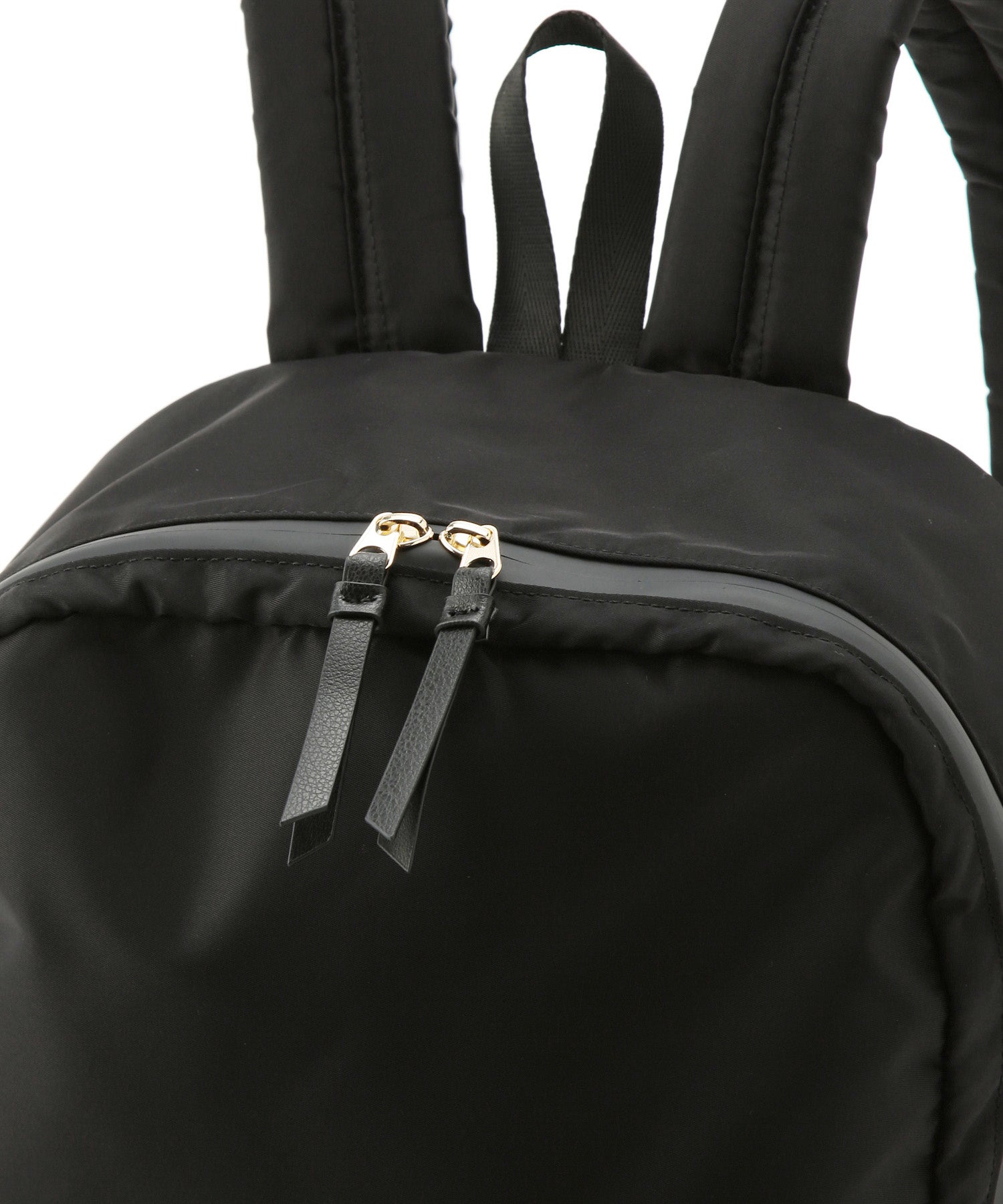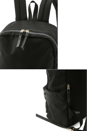 撥水加工を施したポリエステルと、合皮を使用しカジュアルになりすぎないデザインに。