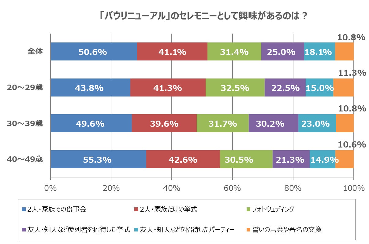 ■「バウリニューアル」は夫婦・家族での食事会が50.6%、20代にはフォトウェディングが広がる