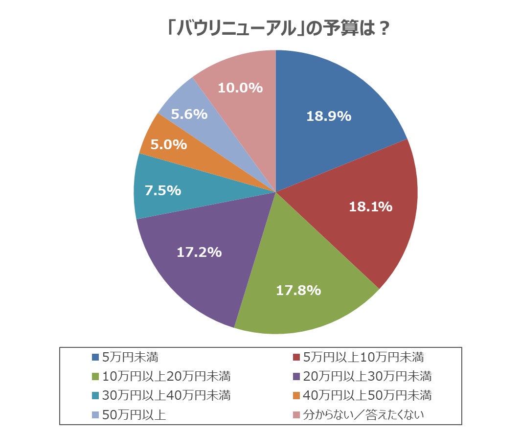 ・「バウリニューアル」の予算は10万円未満が37.0%を占める