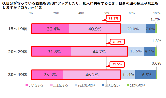 - 加工は年代問わず一般的!?自分の画像を加工してSNSにアップ、全年代が7割越え