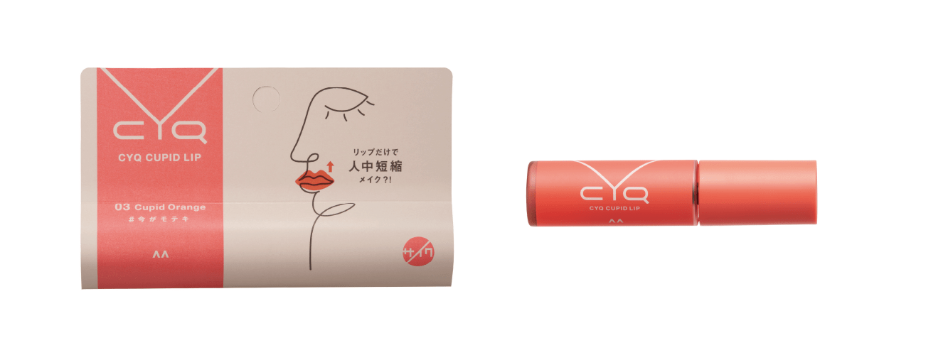 第一弾のアイテムは「CYQ キューピッドリップ」。誰でも簡単に人中短縮メイクができ、唇の山にフィットする新発想のメガチップ採用。顔の余白を少なく見せ、小顔な印象に。5色展開。