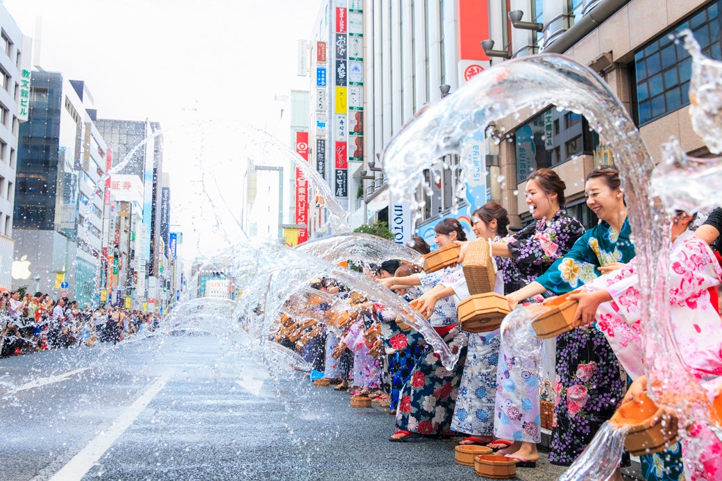 「ゆかたで銀ぶら」は、1970 年にスタートした歩行者天国の開催を記念する「ホリデープロムナード」の一環として、2007年から始まり、今年で18回目を迎えます。夏の風物詩である浴衣を着て銀座にお越しいただき、銀座ならではの夏を楽しんでいただこうという主旨で開催されています。