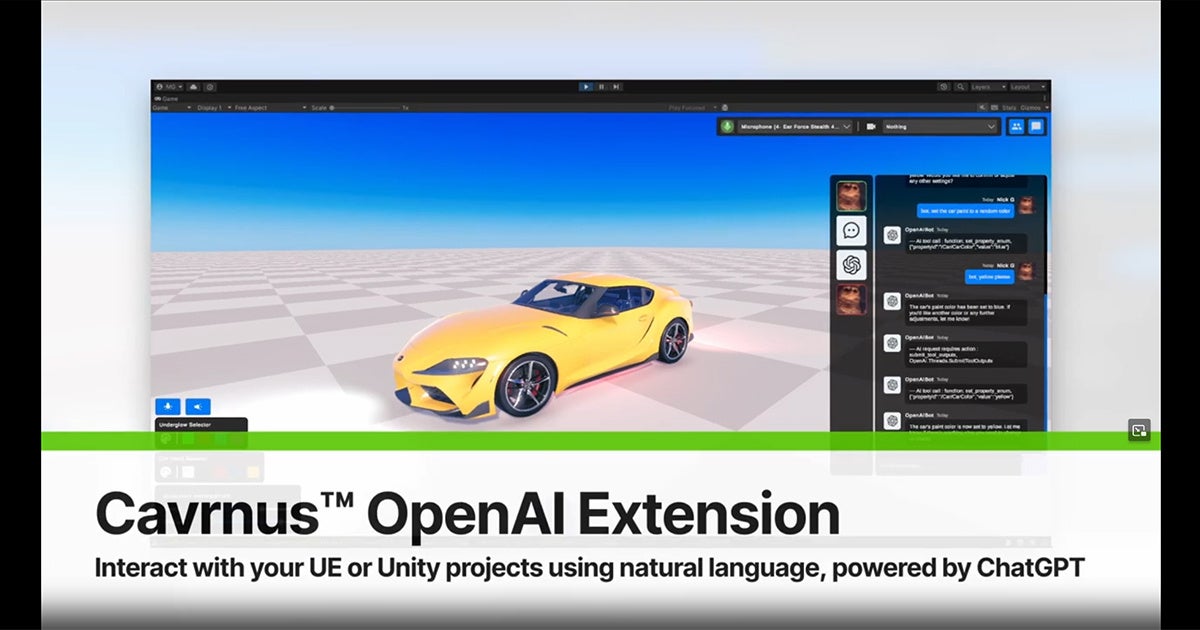 OpenAI Extensionを利用すると、自然言語を使用してUnreal EngineまたはUnityプロジェクトとの対話が可能となり、チャットや音声を用いてCavrnusエクスペリエンスを変更したり、会話の概要を取得することもできるようになります。