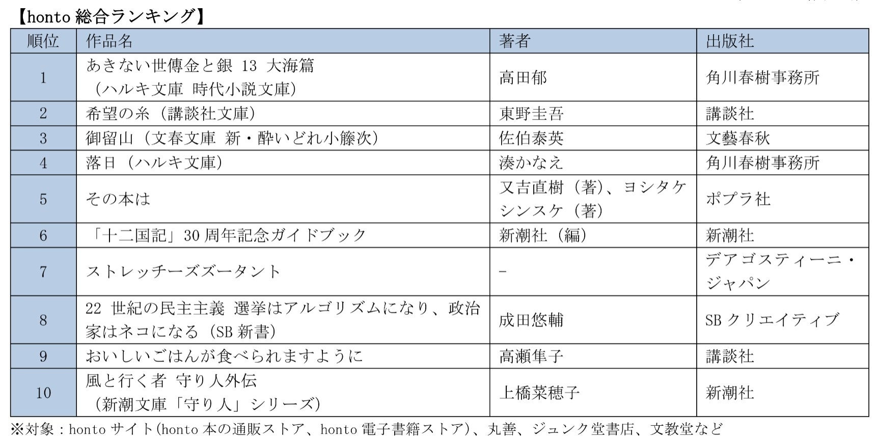 【honto総合ランキング】