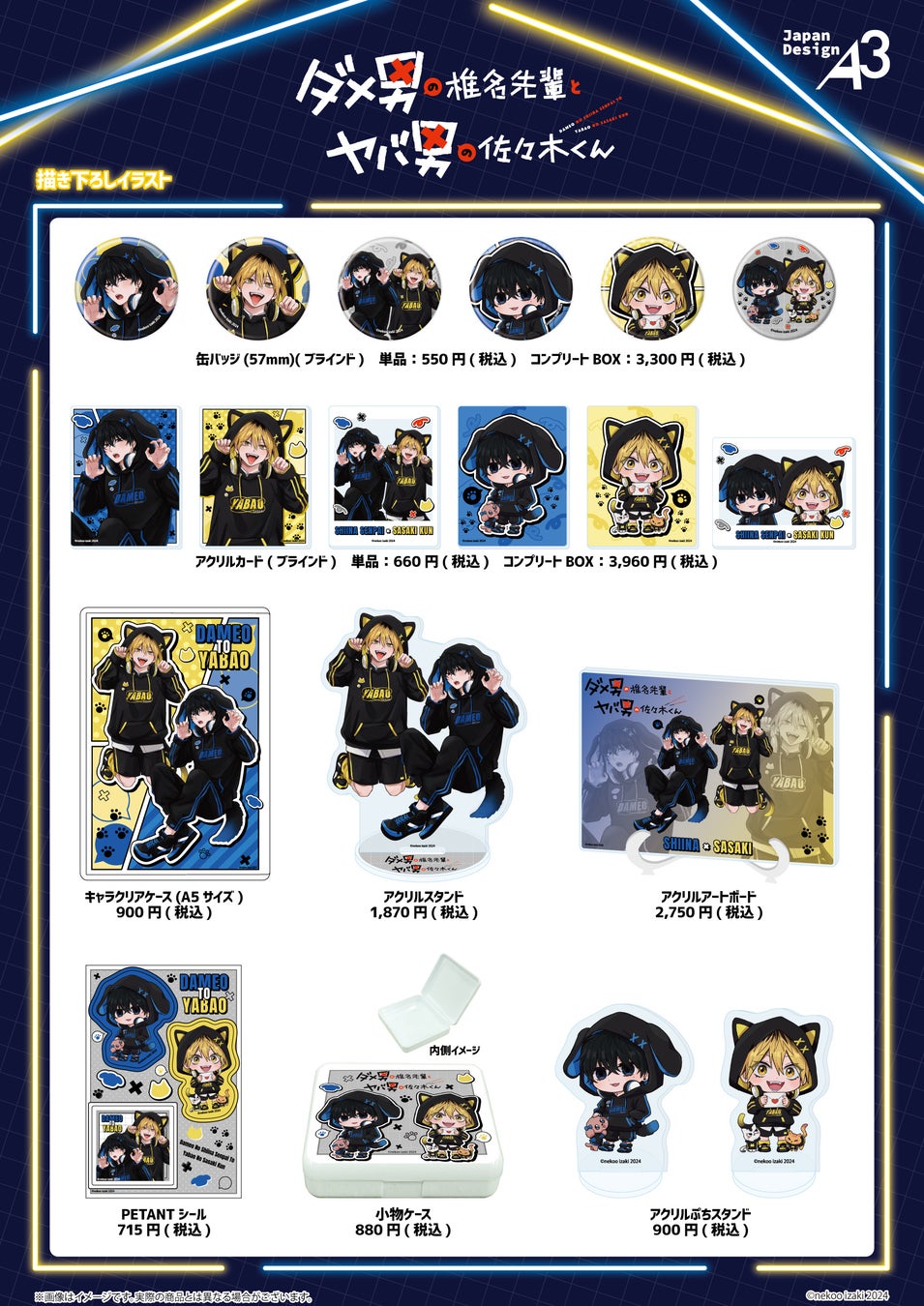 伊咲ネコオ先生による大人気BL漫画『ダメ男の椎名先輩とヤバ男の佐々木くん』(KADOKAWA刊、以下『ダメヤバ』)の新作グッズが、2025年1月25日(土)よりeeo Store池袋本店にて発売! 通販サイト「eeo Store online」でも2024年12月13日(金)よりお取り扱いしています。