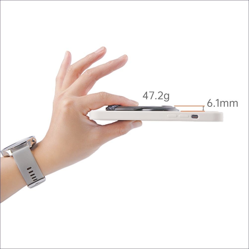 わずか47.2g、厚さ6.1mmのスリムなデザインで、丸みを帯びたエッジが手にしっくり馴染み、ポケットに入れても違和感が少なく快適です。