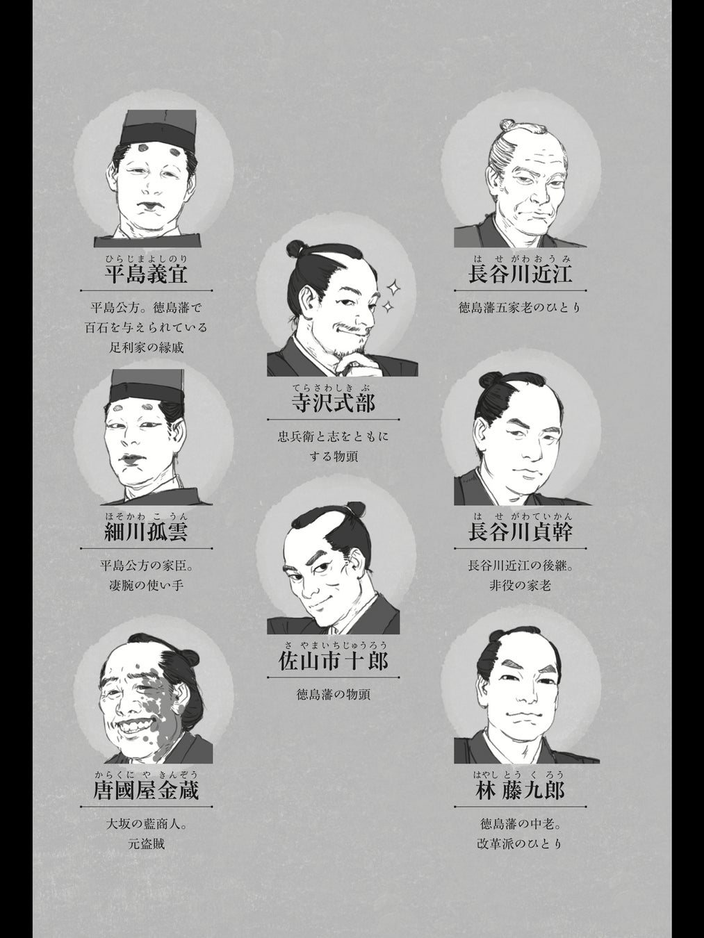 徳島県蜂須賀藩を舞台に、藩政改革に挑む若い家臣たちと、彼らとともに闘った養子から第十代藩主となった蜂須賀重喜の物語。