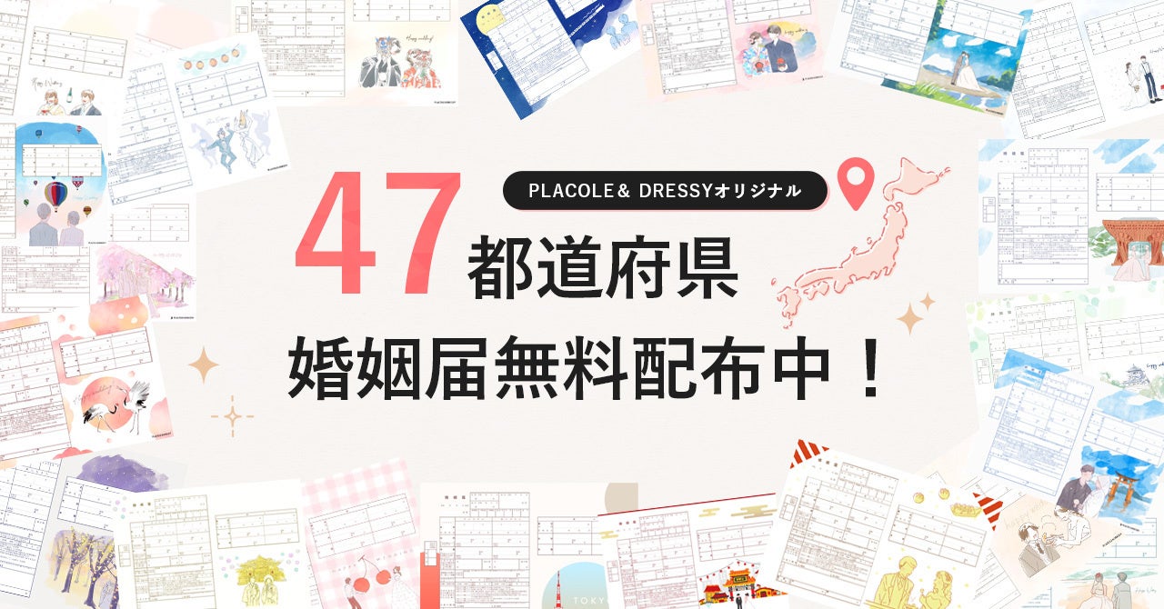 【無料配布中】PLACOLE & DRESSY オリジナル『PLACOLE & DRESSY婚姻届』全47都道府県バージョンが出揃い、20万ダウンロード突破!