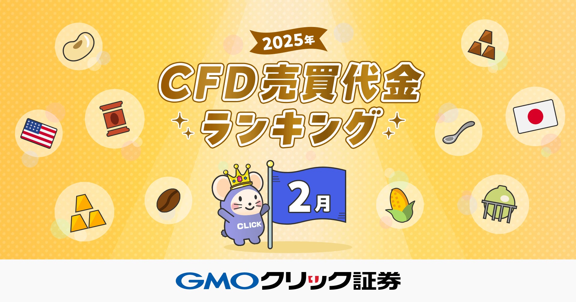 GMOインターネットグループのGMOフィナンシャルホールディングス株式会社の連結会社で、金融商品取引業を営むGMOクリック証券株式会社(本社:東京都渋谷区、代表取締役社長:高島 秀行、以下:当社)は、2025年2月の当社CFD売買代金ランキングを発表いたします。