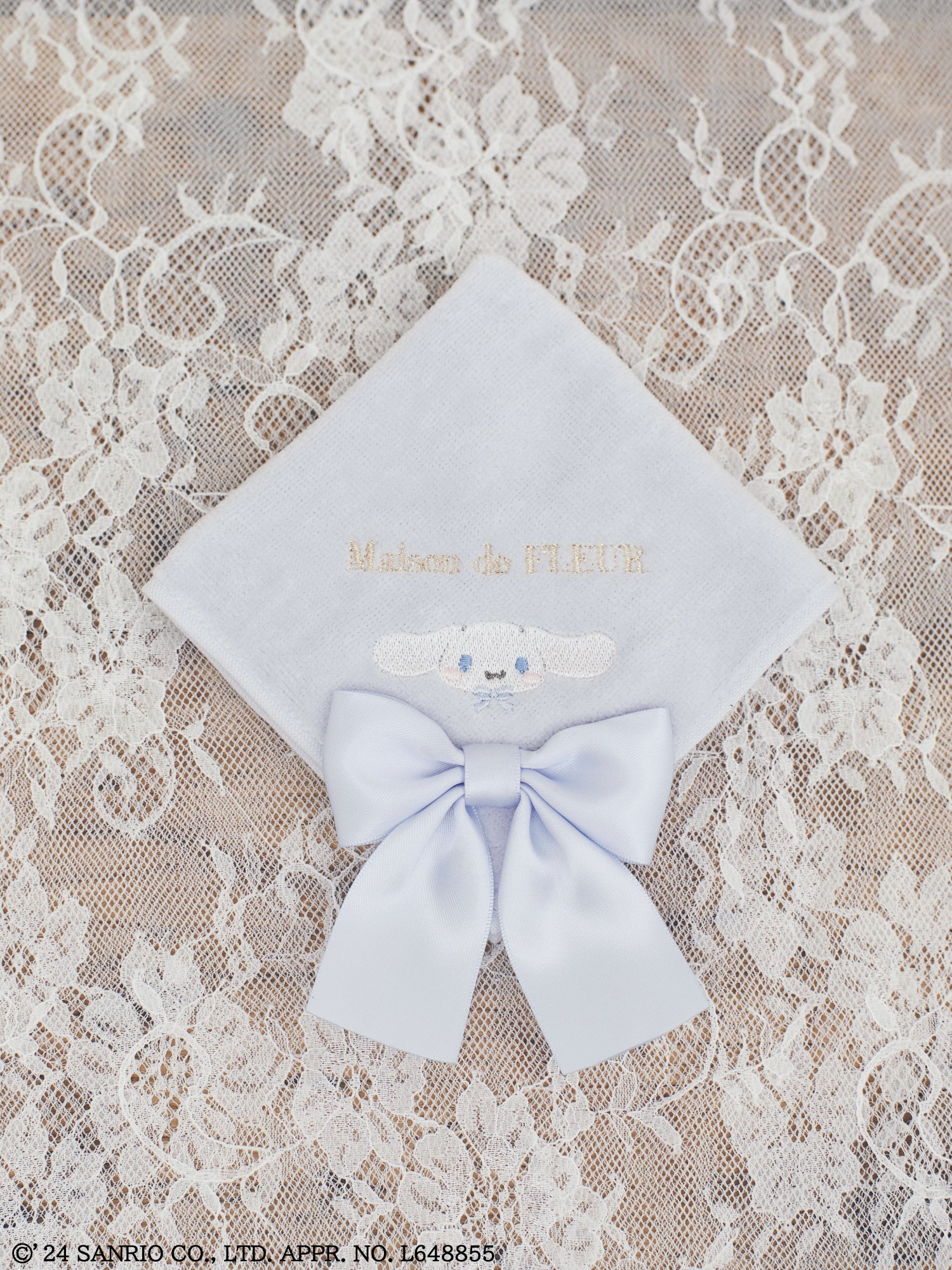 そのほかタオルハンカチには、キャラクターのフェイスモチーフを刺繡で表現。 Maison de FLEURのアイコンである大きなリボンをプラスしました。