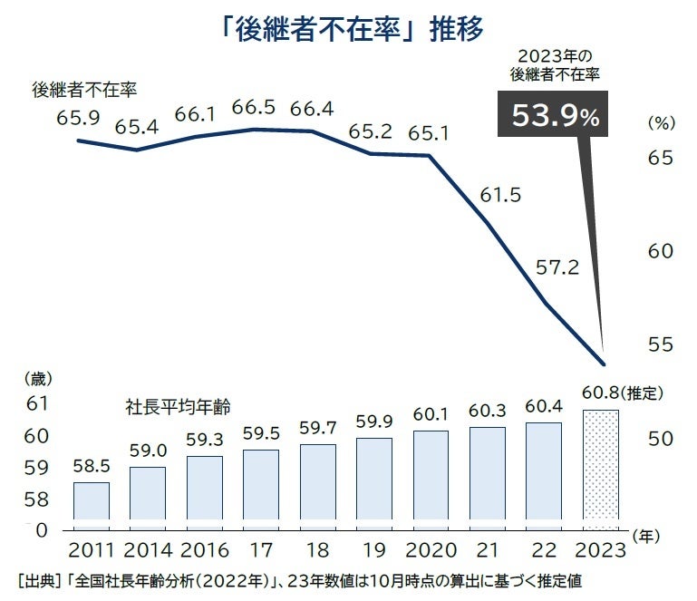 後継者「不在率」、過去最低53.9% 前年比3.3pt低下 後継者問題は改善傾向続く