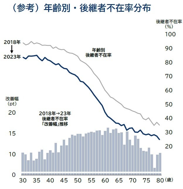 事業承継「適齢期」の60代は不在率40%割れ 都道府県では改善傾向に差異も鮮明
