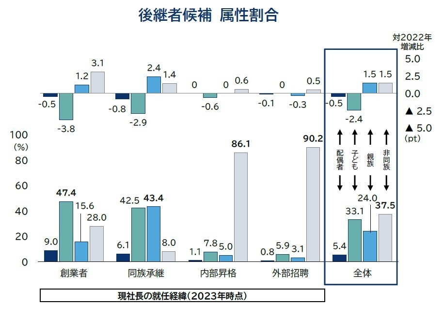 後継者候補:「親族」「非同族」の割合が拡大 「ファミリー」承継は低下傾向
