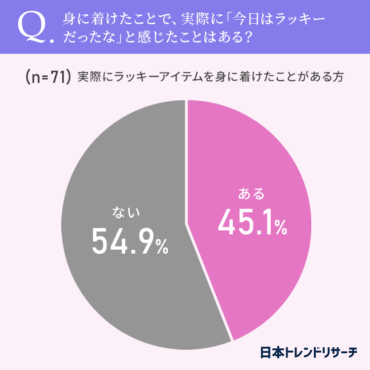 ■45.1%が、ラッキーアイテムを身に着けたことで「今日はラッキーだったな」と感じたことがある