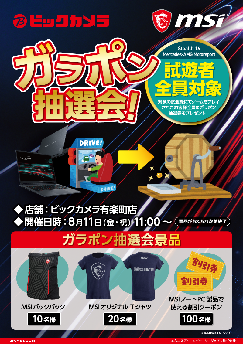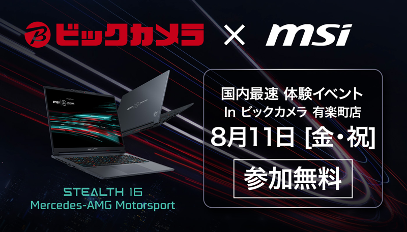 コラボレーション特別デザイン採用 『Stealth 16 Mercedes-AMG Motorsport A13V』発表記念! 国内最速実機体験&ガラポン抽選会をビックカメラ有楽町店にて開催