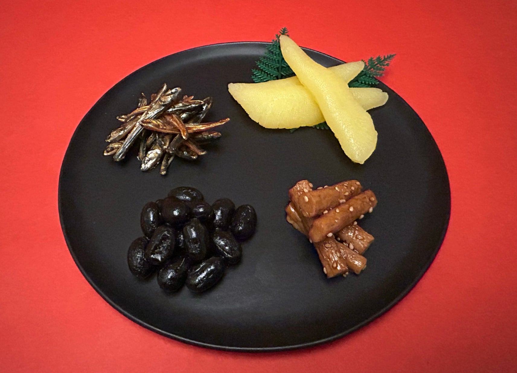 「数の子」「田作」「たたき牛蒡」「煮豆(黒