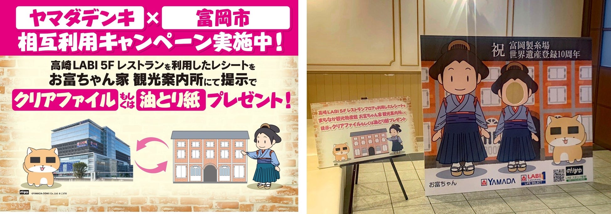 「のりまゆ」は、ヤマダデンキ「LABI1 LIFE SELECT 高崎」のフロアパネル展示や富岡製糸場とのキ ャラクターコラボに使用される等、活躍の場を広げています。