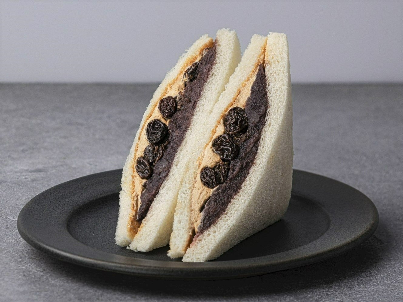 きめ細かなサンドイッチ専用の食パンで挟むのは、“あんこスイーツ”で人気の「an and an」のあんこ。そこに、メルヘン自慢のラムレーズンと焦がしキャラメル風クリームを組み合わせました。あんこの風味にラムの香りやキャラメルのほろ苦さが加わった、ほかにはない新作サンドです。
