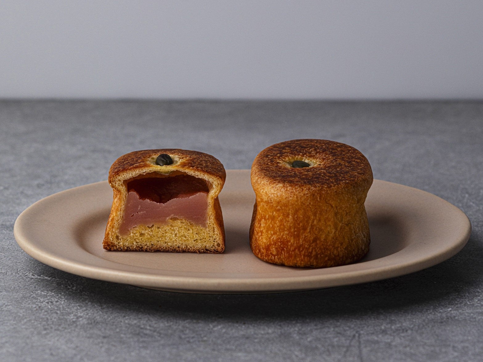 和洋折衷×レトロモダンをテーマに開発されたあんぱん。高級バターと卵を惜しみなく使った、焼き菓子のようなさっくり食感のパンが特徴。内側に包まれているのは、春を感じるいちごあんで、バターが香るリッチな味わいの生地と甘酸っぱいあんが好相性です。