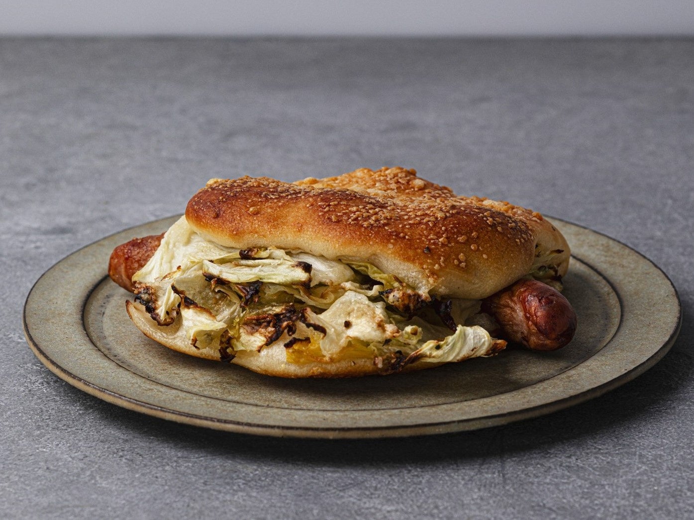 風味豊かな美瑛小麦、上質なオリーブオイルなどこだわり素材の持ち味を活かしたフォカッチャは、ポテトを練り込んだもっちりとした食感。間に挟んだ自家製ベシャメルソースとパルメザンチーズのクリーミーな味わいに、春キャベツの甘み、ソーセージの肉汁も加わり食欲をそそります。