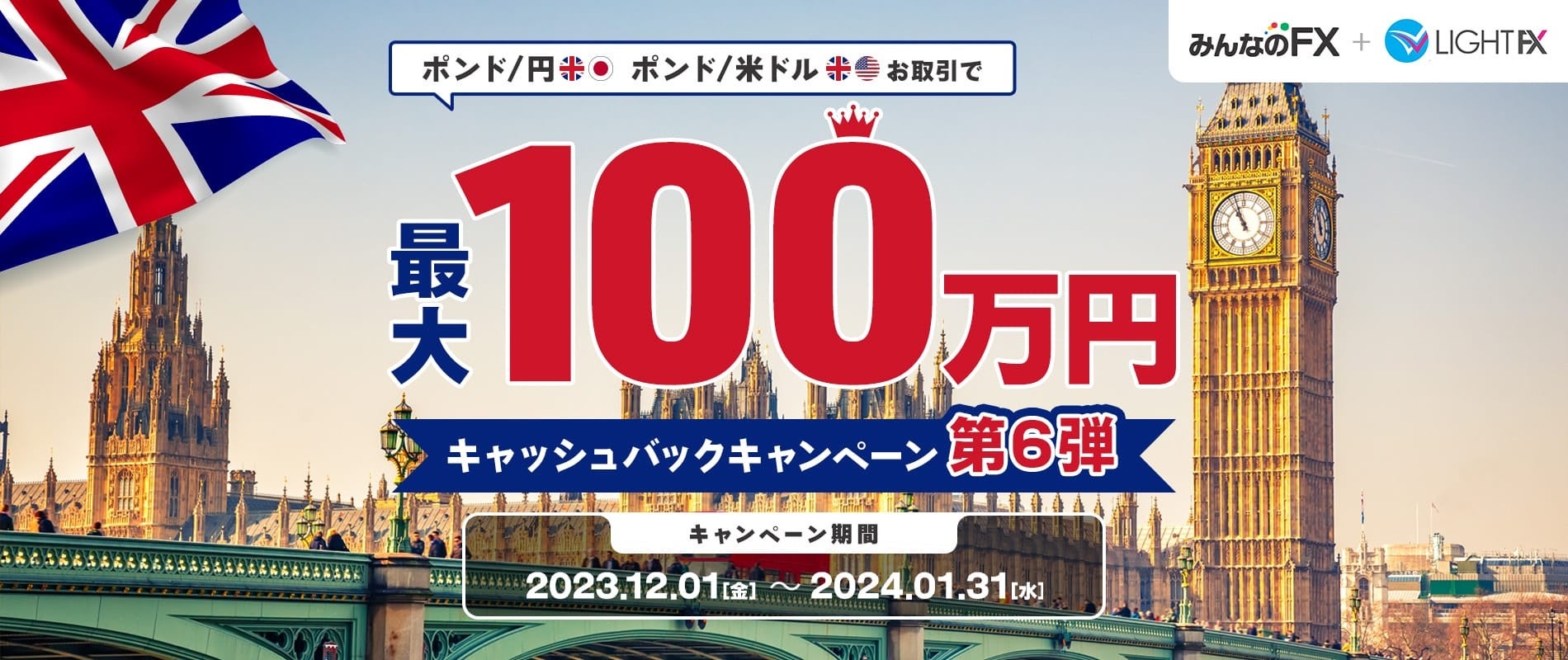 【みんなのFX】ポンド/円・ポンド/米ドルの取引に応じて、最大100万円をキャッシュバックするキャンペーンを実施します!