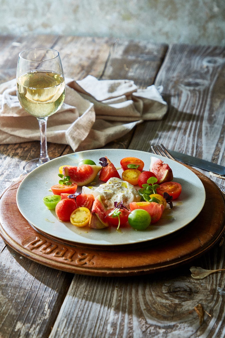 【NEW】イタリア産ブラータチーズと季節のフルーツ、カラフルトマトのカプレーゼ