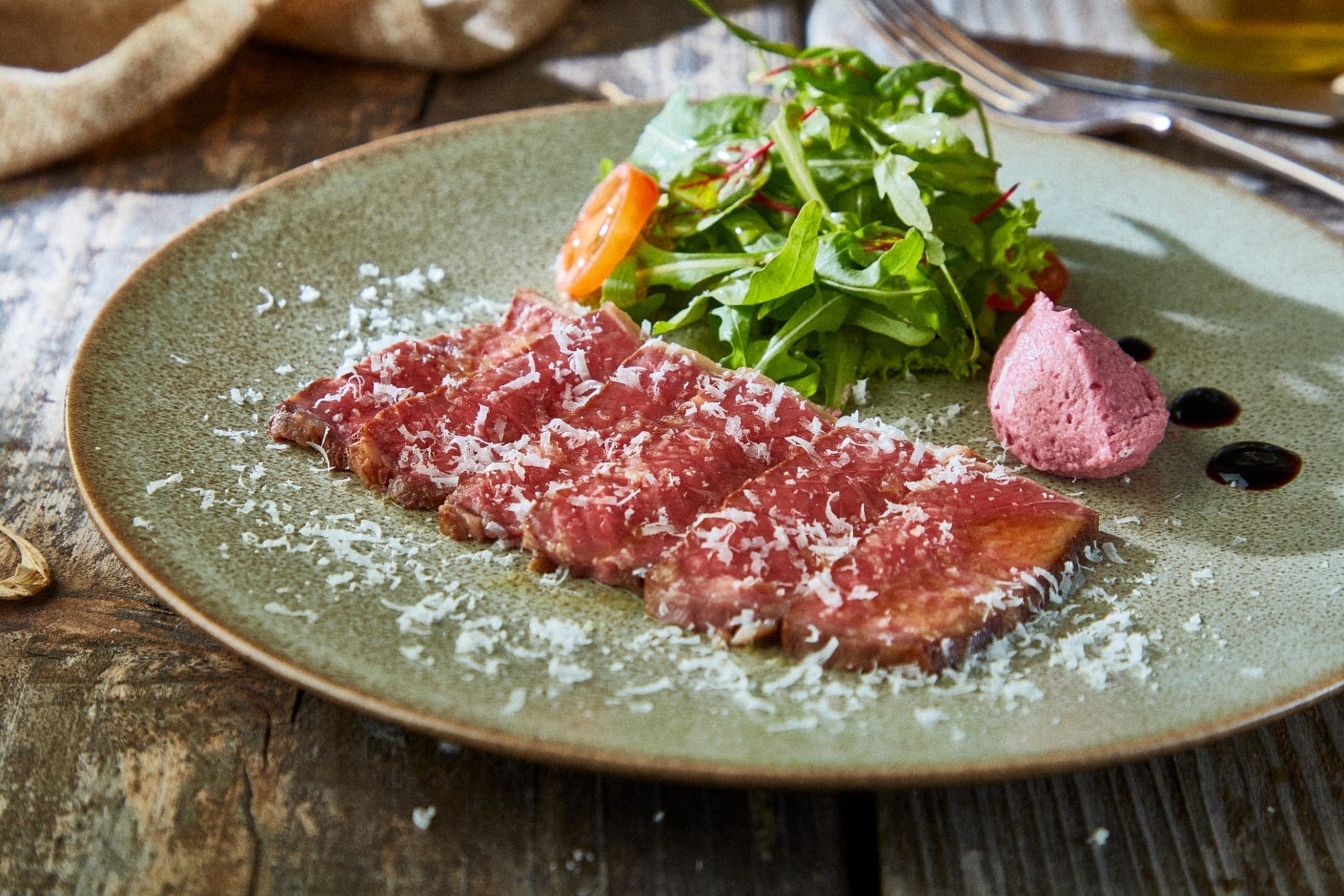 【NEW】アンガス牛サーロインのタリアータ ~ビーツのムースを添えて~