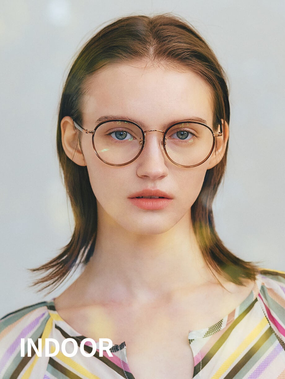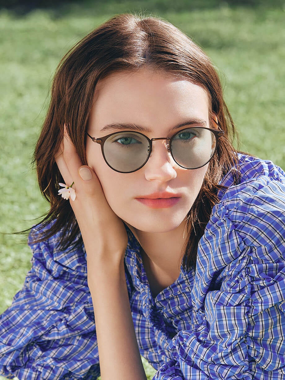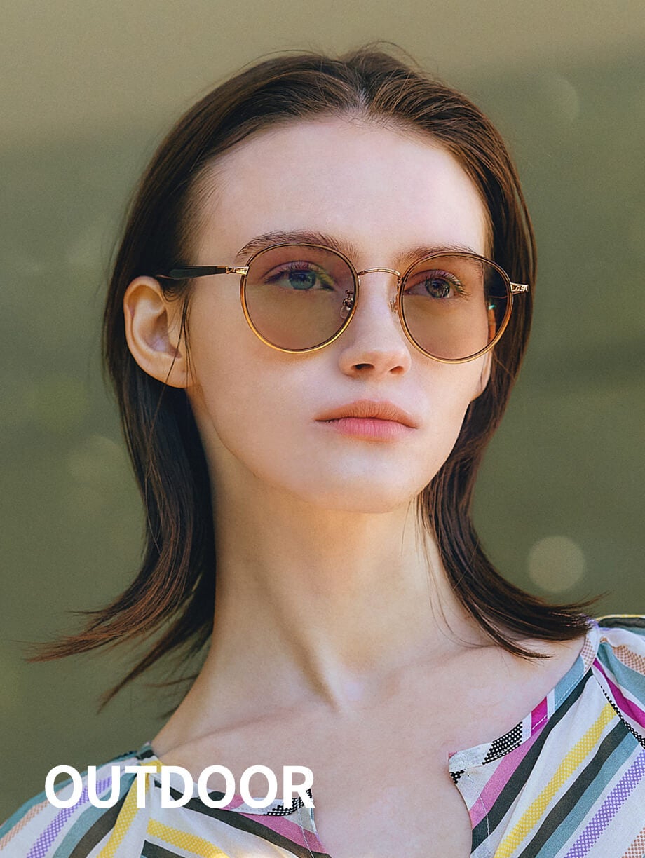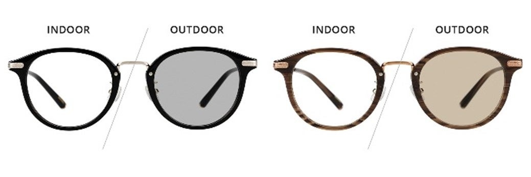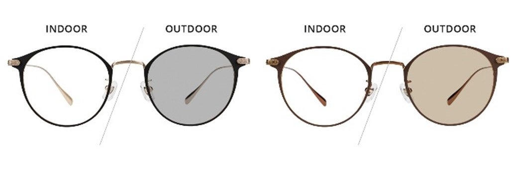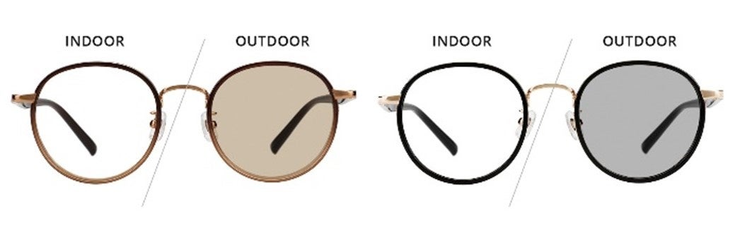 小ぶりでスリムなラインに加えてインドアとアウトドアで調光するレンズでエレガントな印象に