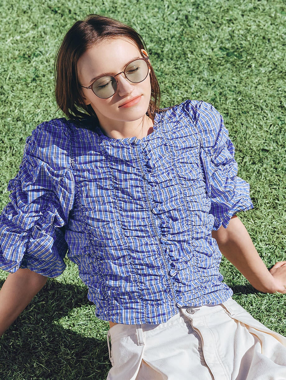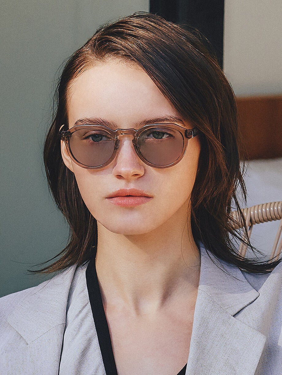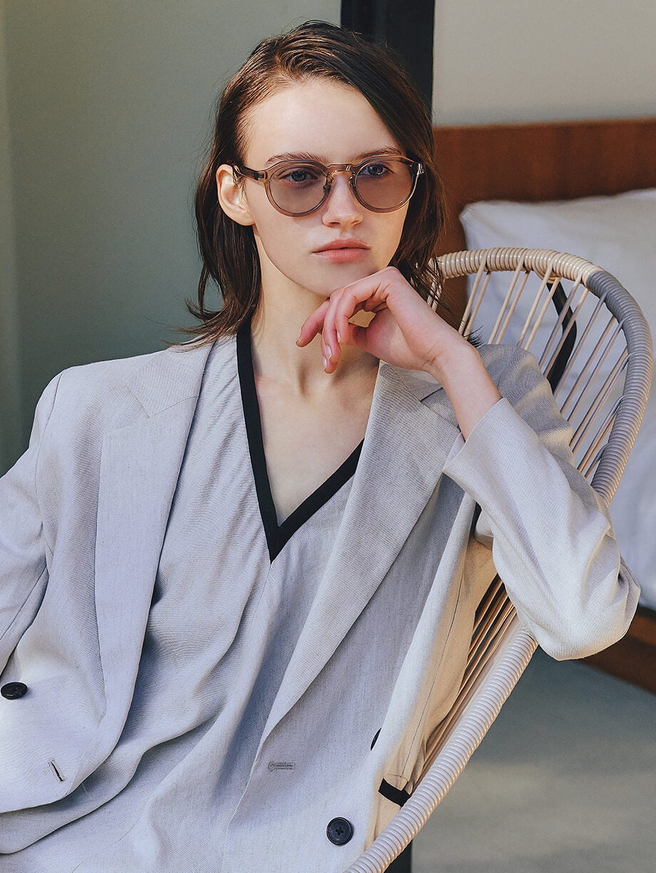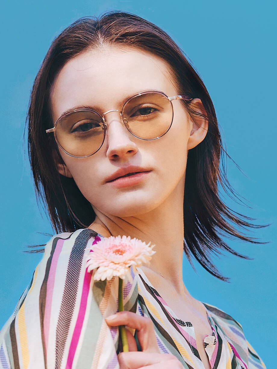 小ぶりでスリムなラインに加えてインドアとアウトドアで調光するレンズでエレガントな印象に