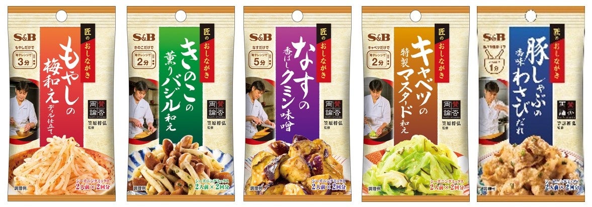 エスビー食品株式会社は、日本料理店「賛否両論」の店主 笠原将弘氏監修の、「和」と「スパイス&ハーブ」を掛け合わせたメニュー用シーズニング「匠のおしながきシーズニング」シリーズから、「きゅうりの花椒味噌和え」「ほうれん草の生姜ごま和え」「ブロッコリーの黒胡椒醤油」「鶏の柚子こしょう焼き」「鶏つくね カレー仕立て」を新発売します。