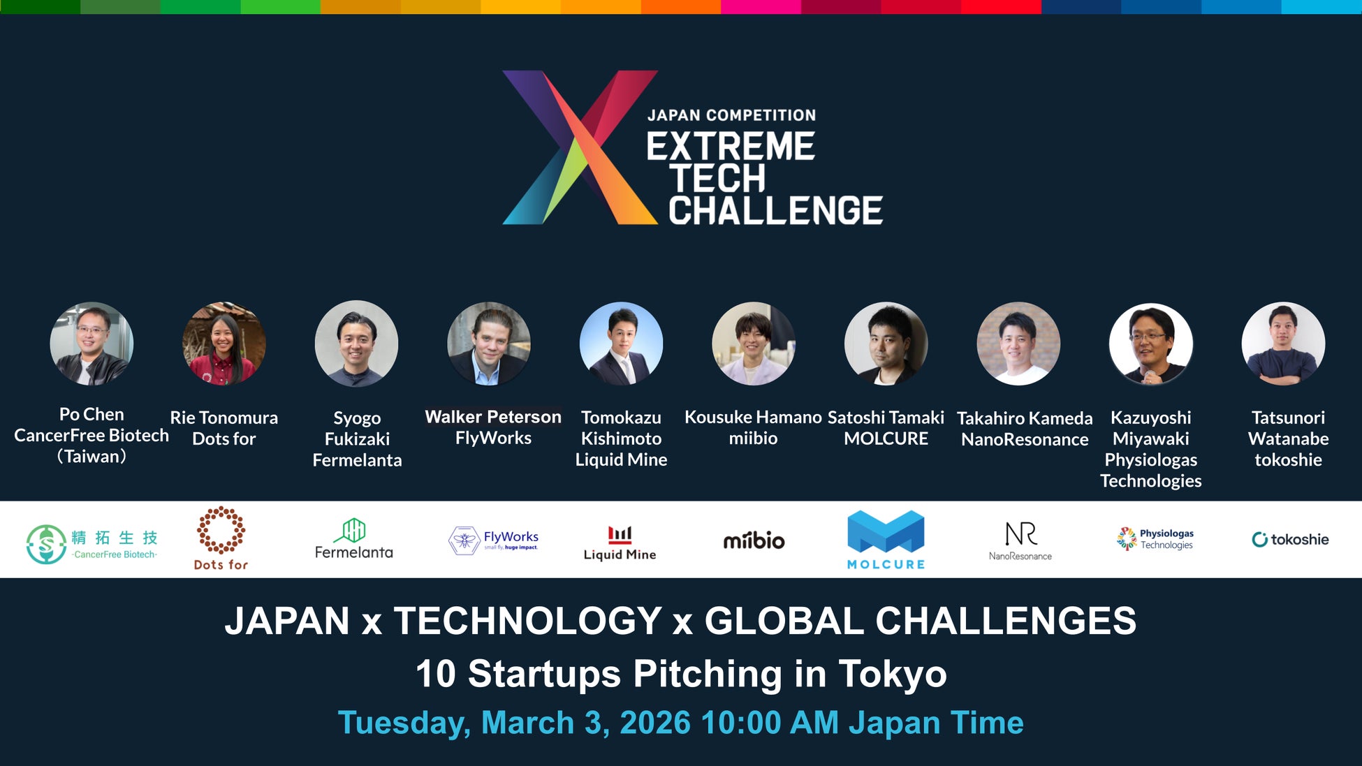 株式会社ガイアックスと株式会社アイティーファームが共同運営を行うXTC JAPAN運営委員会(本部:東京都千代田区、幹事:春日伸弥)は、グローバル課題に技術で取り組む起業家のための世界最大規模のスタートアップ・コンテスト「Extreme Tech Challenge(以下「XTC」)」の第7回日本大会「XTC JAPAN 2026」( https://xtc-japan.org/xtc-japan-2026 )にピッチ登壇するファイナリスト10社が審査員選考を経て決定したことをお知らせいたします。ピッチ優勝企業は、2026年秋ごろ(予定)に米国San Francisco(予定)で開催されるXTC世界大会へ招待されます。