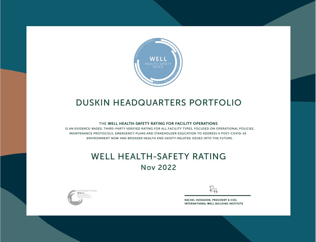 株式会社ダスキン(本社:大阪府吹田市、社長:大久保 裕行)は、「ダスキン本社ビル」、「ダスキンミュージアム(企業ミュージアム)」、「ダスキンスクール(研修施設)」(すべて大阪府吹田市)において、世界的な基準で「健康・安全性」を評価する国際認証「WELL Health-Safety Rating」を2022年11月に取得しました。国内の企業ミュージアム、研修施設では初めての取得※となります。