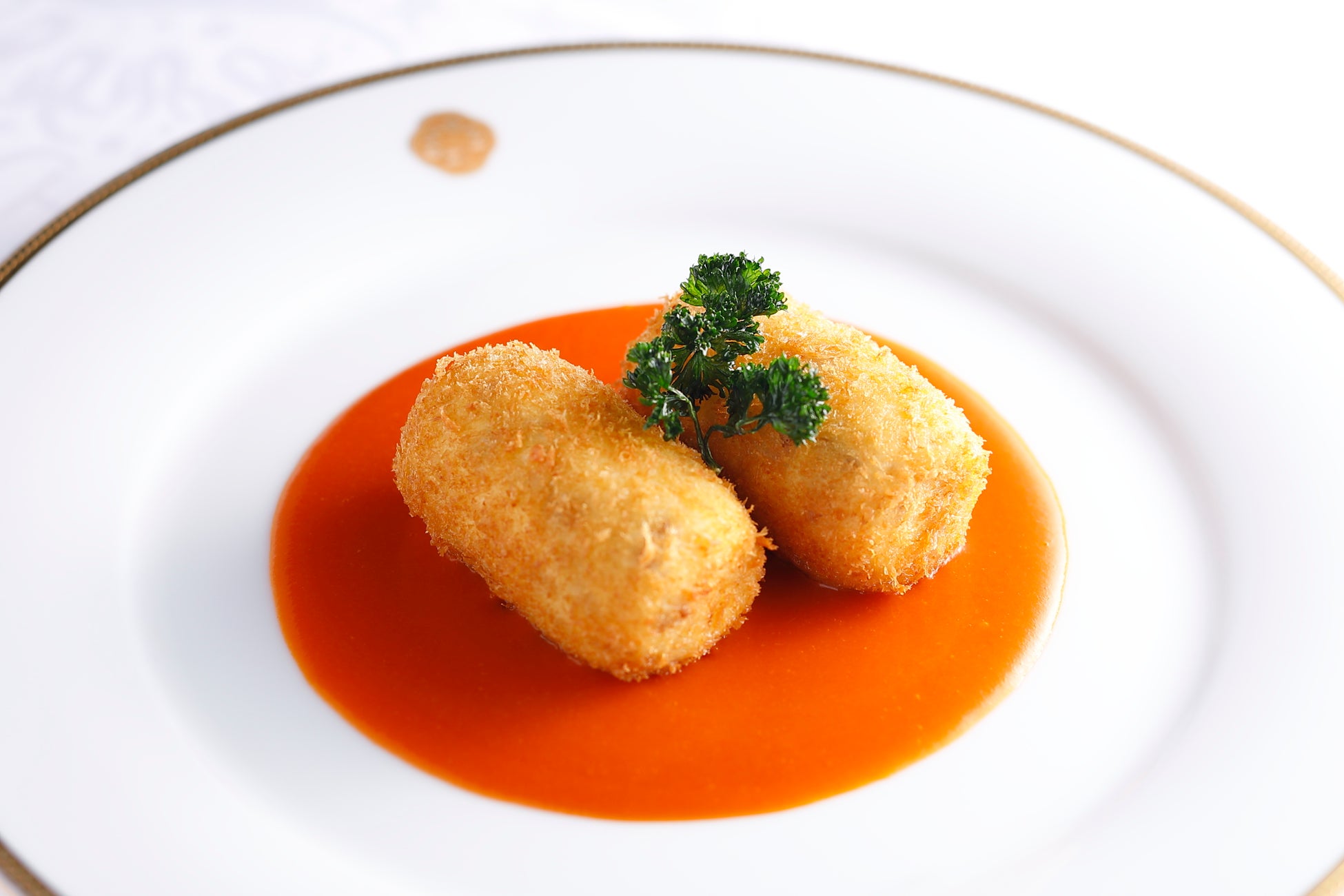 夢である、シェフになったシナモロール。コックコートを着用し『ミートクロケット』を作りました。『ミートクロケット』は1931年から続く資生堂パーラーの伝統メニュー。手間暇を惜しまずにレシピを忠実に守り続けてきました。なめらかなベシャメルソースに伝統のトマトソース、外はカリっと中はトロトロの絶妙な食感が魅力の『ミートクロケット』。仕上げに素揚げしたパセリもお忘れなく。