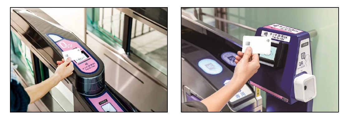 対象ブランドのタッチ決済機能付きカードやスマートフォン等を、入出場時(乗降車時および乗船時)