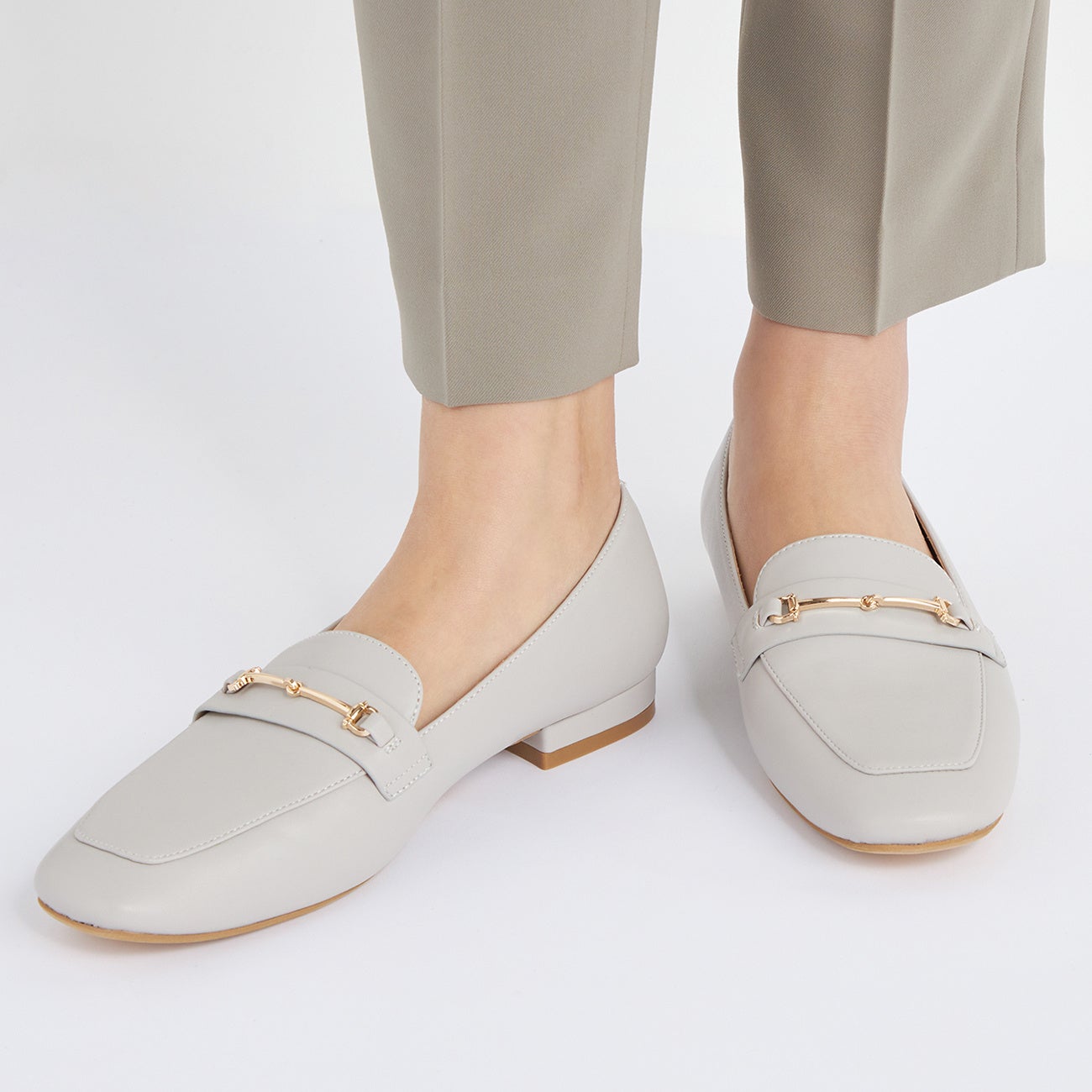 エレガントな印象を与える華奢なビット金具をあしらった「ビットローファー」は、コーディネートしやすい黒とLグレーの2色展開です。バックルデザインがポイントの「モチーフフラットパンプス」は、ポインテッドトゥデザインとマットな黒でカジュアルすぎず、きちんと感のあるシーンも安心してお召しいただけます。