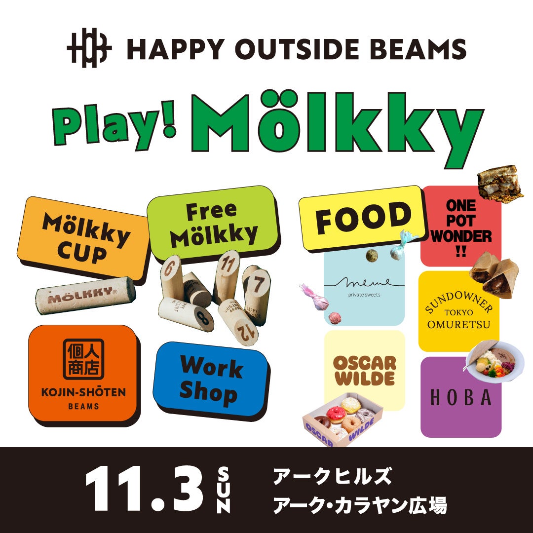 株式会社ビームス(本社:東京都渋谷区、代表取締役社長:設楽洋)は、2024年11月3日(日・祝)、東京・赤坂のアークヒルズ・カラヤン広場にて、モルックを中心に楽しむイベント『HAPPY OUTSIDE BEAMS_Play Mölkky』を初開催いたします。