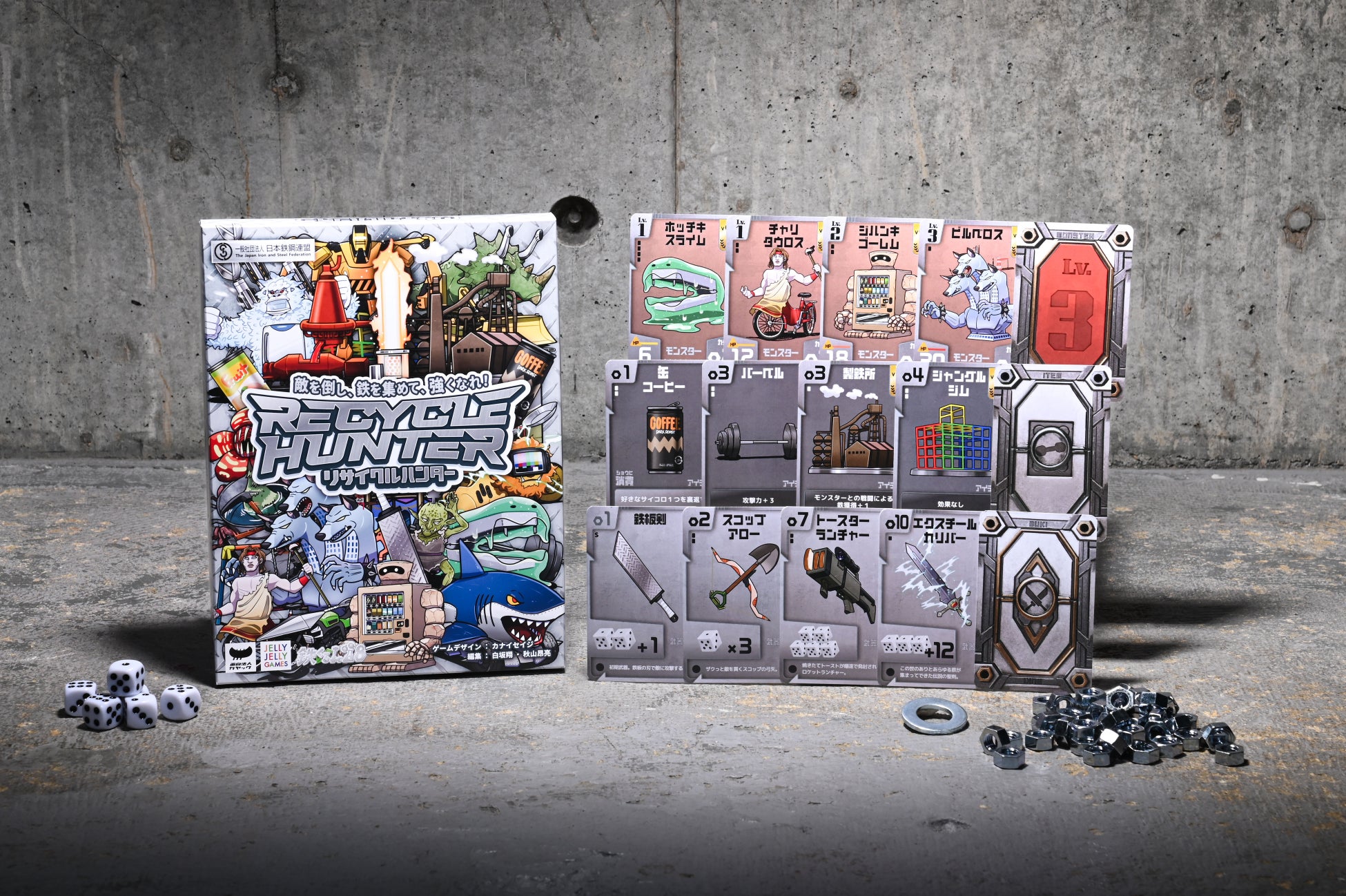 面白法人カヤックと一般社団法人日本鉄鋼連盟は、2023年12月に”鉄くるLAB”シリーズ第一弾として、アイテムのほとんどが本物の鉄でできたボードゲーム「鉄の転生すごろく」を発表し、大きな話題となりました。第二弾の『リサイクルハンター』にも鉄製の「ナット」と「ワッシャー」をアイテムとして取り入れました。