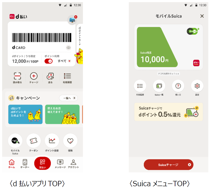 株式会社NTTドコモ(以下、ドコモ)と東日本旅客鉄道株式会社(以下、JR東日本)は、2024年2 月 13日(火)からドコモが提供する「d払い®」アプリ(Android™版)とJR東日本が運営する「モバイルSuica」の連携を開始いたします。これにより、「d払い」アプリ(Android版)からSuicaの新規発行のお申込みやチャージ※1が可能となります。