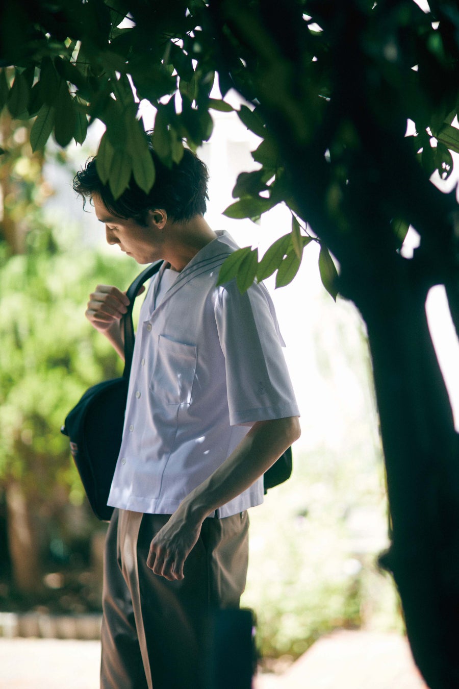 男子夏服にセーラーカラーを採用し、個性を表現するデザインに