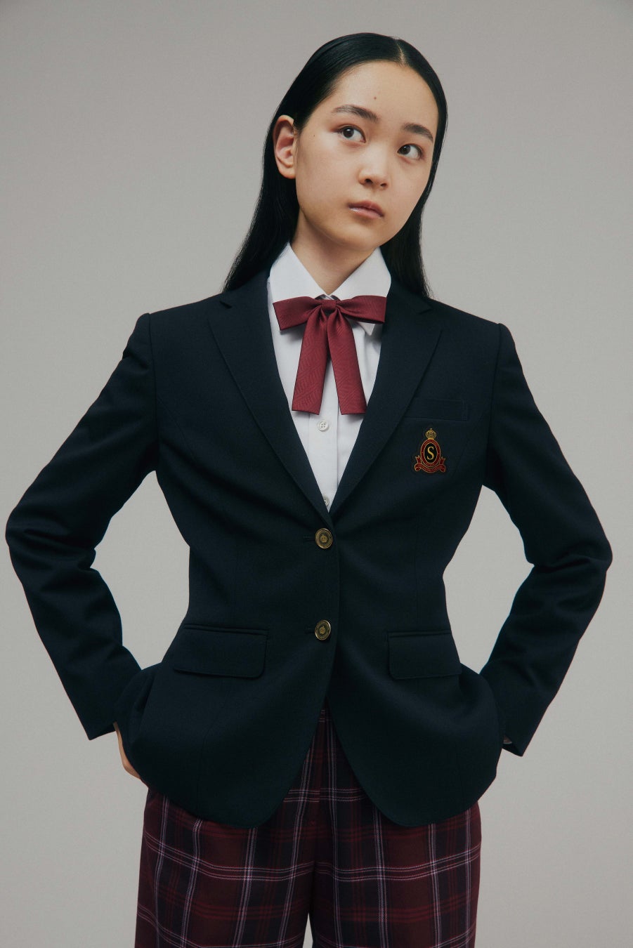 品川学藝高等学校の誕生に際しコンセプトとしたのは、日本最古の私立音楽学校をルーツとする“伝統”と、現代のライフスタイルに即した清新さを取り入れる“進取”の粋を両立させること。ストレッチの効いた素材ながらもクラシックなシルエットを維持できるジャケットや、酷暑にも心地よく着こなせる涼感素材の夏服など、アクティブな高校生活を衣服の面からサポートしたいという願いを込めて、一つずつ慎重に選び構成。今を生きる10代の青年にとってお洒落心が満たされる洗練さと、少し背筋が伸びるフォーマルな佇まい、いずれも感じてもらたいとの願いが込められています。
