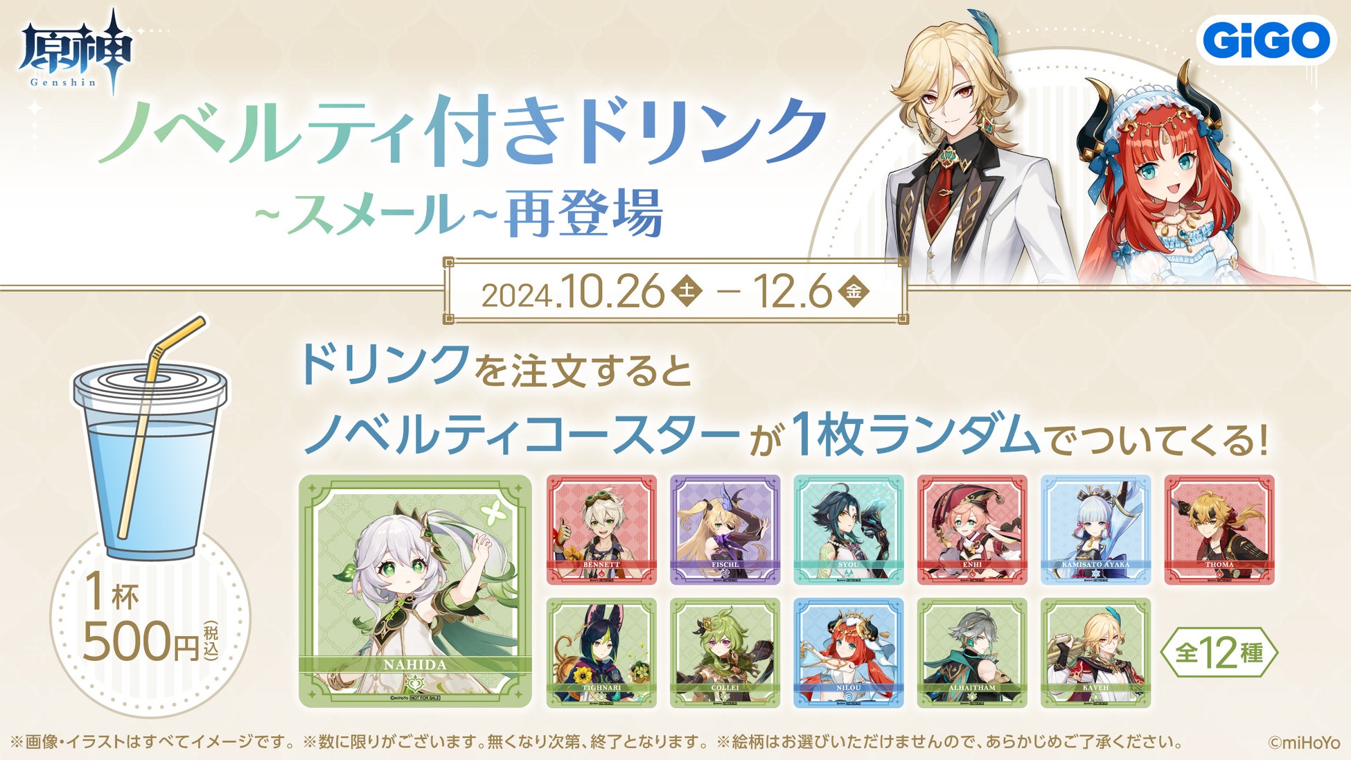 1 個お求めの方に、オリジナルコースター(全 12 種/ランダム)を 1 つプレゼント!