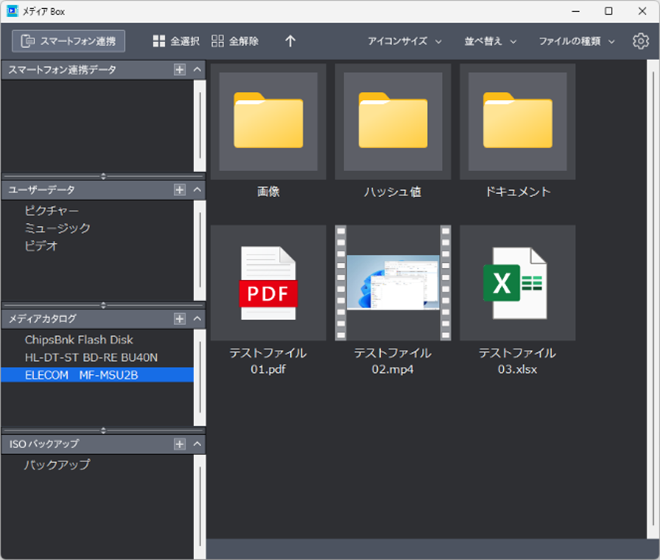 注:メディアBox が対応している形式のみ一覧化できます